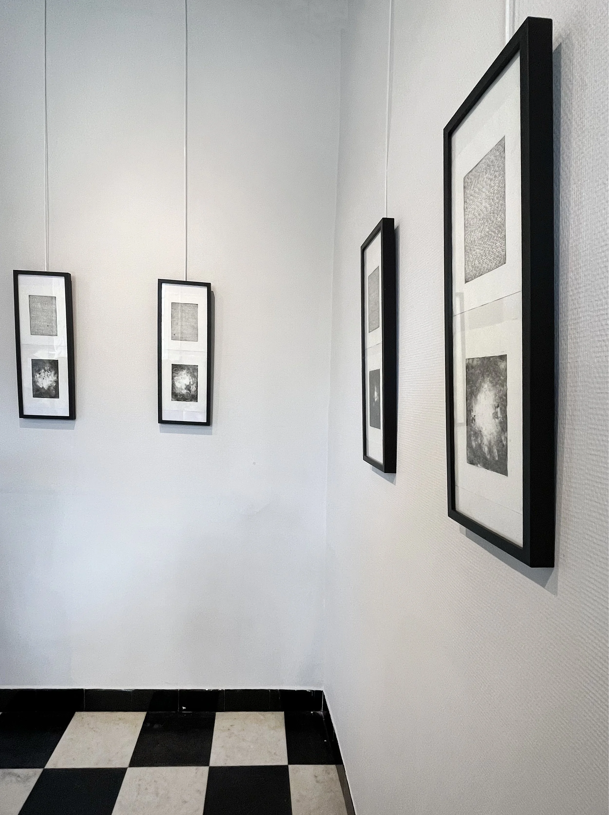 Pour son œuvre Les Captifs, l’artiste a réutilisé réutilisé un travail réalisé en 2023 en résidence à la prison d'Artenay : elle avait alors pris l'empreinte des murs et des planchers sur du papier japonais. Ces œuvres ont été complétées par un travail similaire sur les sols du musée de la Corbillière.